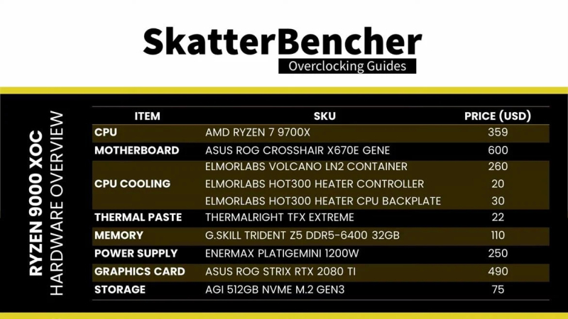O recorde foi estabelecido quando o processador Ryzen 7 9700X rodava a apenas 6.318 MHz. Para fazer overclock, o SkatterBencher não alterou apenas o multiplicador de frequência do processador e as configurações de tensão. Ele usou uma combinação de técnicas, incluindo ajuste fino do barramento BCLK, Precision Boost Overdrive, AMD Curve Optimizer e Curve Shaper para permitir que o algoritmo Ryzen Precision Boost operasse acima de 6 GHz sob nitrogênio líquido.