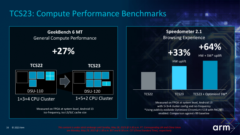 A British Arm revelou uma nova plataforma para chipsets móveis – Arm Total Compute Solutions 2023 (TCS23), e a taiwanesa MediaTek já anunciou que pretende usá-la em produtos de próxima geração. A plataforma inclui novos núcleos de computação Cortex-X4, Cortex-A720, Cortex-A520 com arquitetura Armv9.2 e núcleos gráficos Immortalis-G720, Mali-G720 e Mali-G620.