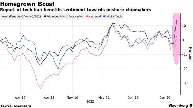 Paradoxalmente, segundo a mesma Bloomberg, no contexto de notícias sobre uma possível proibição de exportação, as ações dos fabricantes de chips chineses subiram de preço – os investidores consideraram que possíveis restrições contribuiriam para o desenvolvimento de uma indústria semelhante na China em troca da compra da ASML máquinas. O crescimento dos títulos de vários fabricantes chineses de chips foi de 10% ou mais.