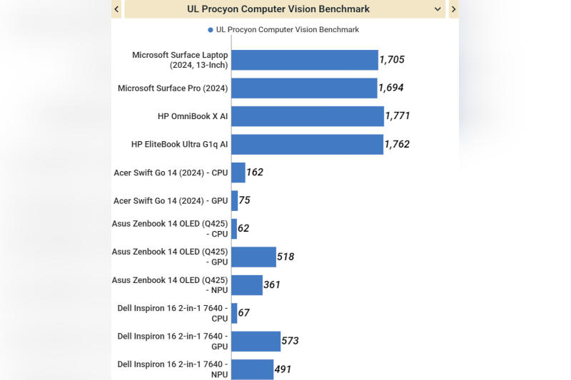 O chip Snapdragon X Elite inclui um processador central, processador gráfico e unidade de processamento neural (NPU) – esta última possui desempenho de 45 TOPS, enquanto o Copilot+ PC requer pelo menos 40 TOPS. As versões anteriores dos chips móveis AMD e Intel tinham NPUs com desempenho de 11 a 16 TOPS. Os testes mostraram que o chip Arm faz jus às suas afirmações: demonstra alto desempenho da CPU, o NPU faz com que os algoritmos de IA funcionem rapidamente e a duração da bateria atinge impressionantes 25 horas.