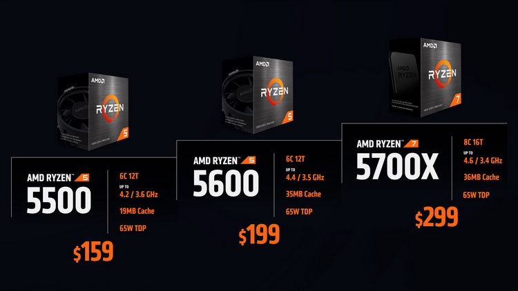 Entre os modelos apresentados, o Ryzen 7 5700X de 8 núcleos e 16 threads custa US$ 299, o Ryzen 5 5600 de 6 núcleos e 12 threads e o Ryzen 5 5500 custam US$ 199 e US$ 159, respectivamente. Você pode ler sobre o desempenho dos jogos dos dois últimos em um artigo recente. Observamos apenas que o Ryzen 5 5600 é na verdade o “assassino” do Ryzen 5 5600X e torna a compra deste último um empreendimento duvidoso. Tanto ele quanto o Ryzen 5 5500, mais acessível, são boas opções para atualizar sistemas em chips básicos de gerações passadas.