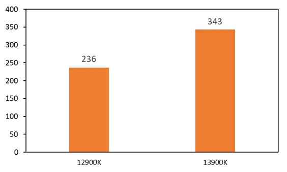 O Core i9-13900K foi testado com SDRAM DDR5-6000 e DDR4-3600 e uma placa de vídeo Radeon RX 6900 XTXH. O NZXT Kraken X73 CBO foi usado para refrigeração, o limite de consumo de 253 W definido pela especificação para o Core i9-13900K foi removido em testes.