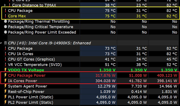 Vazamentos anteriores mostraram que o consumo máximo de energia do Core i9-14900KS poderia ser superior a 400 W. Os últimos dados fornecidos por um dos participantes do fórum Overclock.net, que já havia publicado fotos do processador, confirmam esta informação.