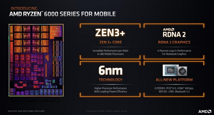 A AMD anunciou o início das vendas de laptops baseados em processadores móveis Ryzen 6000 series Rembrandt. A partir de hoje, apenas computadores baseados em chips Ryzen 6000HS estarão disponíveis para venda. Produtos baseados nos principais processadores das séries H e HX, bem como chips da série U com eficiência energética, estarão à venda no início de março.