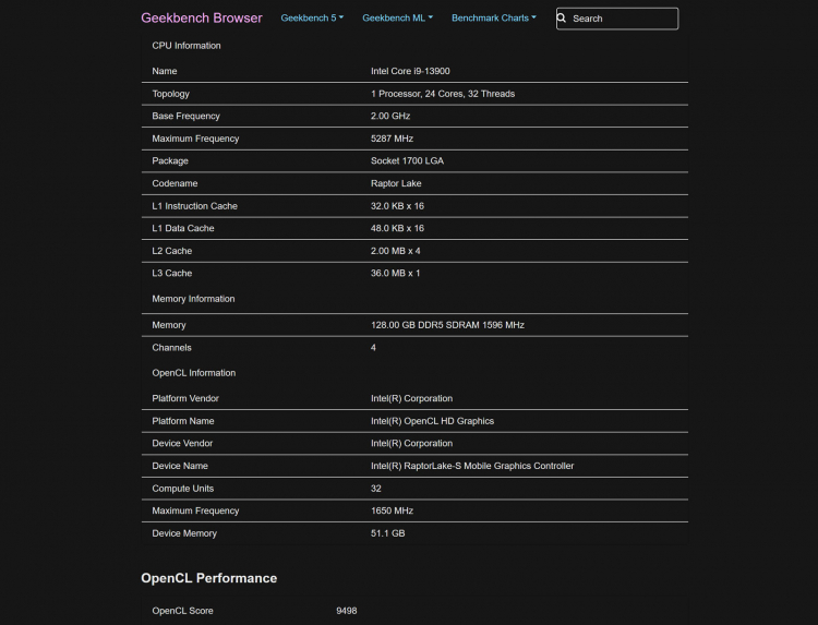 O Geekbench OpenCL Synthetic Benchmark Database divulgou dados sobre o desempenho gráfico integrado dos processadores Intel Core de 13ª geração. O teste foi realizado em um determinado PC HP equipado com processador Intel Core i9-13900. No teste de gráficos OpenCL, a Intel “embutida” mostrou um resultado de 9498 pontos. Isso é cerca de 93% menor que o resultado da placa gráfica discreta NVIDIA GeForce RTX 3070.