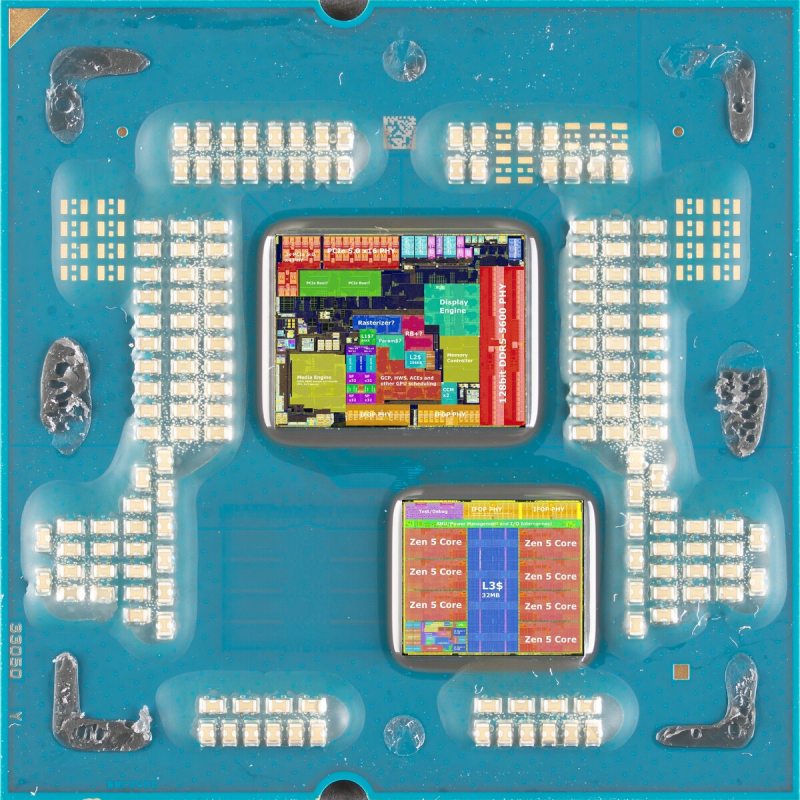 Os entusiastas da tecnologia realizaram uma desmontagem completa de um dos processadores da série Ryzen 9000 (Granite Ridge) e compartilharam imagens altamente detalhadas da matriz CCD (com núcleos Zen 5) e cIOD (entrada-saída) dos novos processadores.