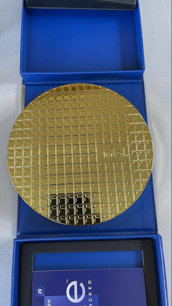 O comprador capturou o desempacotamento do chip em fotografias. A versão in a box do processador Intel Core i9-12900K contém uma pequena pastilha de silício falsa que é usada como elemento reflexivo.