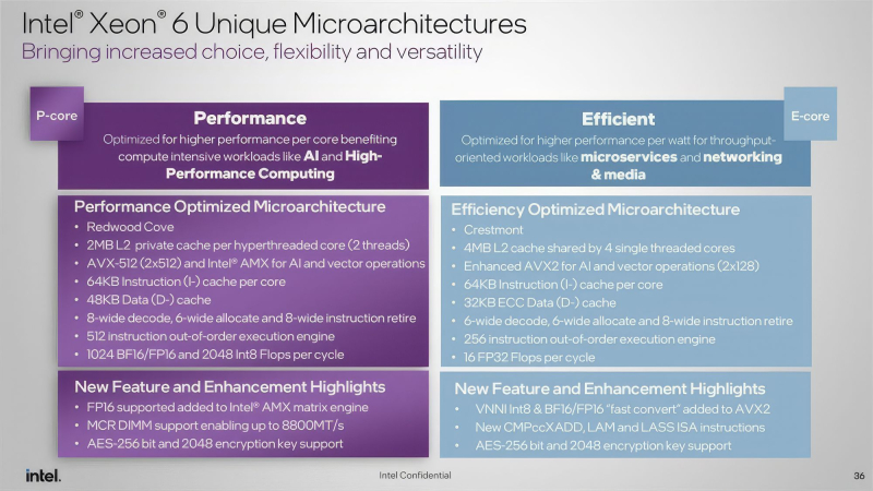 Na Computex 2024, a Intel anunciou o lançamento dos processadores de servidor com eficiência energética Xeon 6700E (Sierra Forest). Junto com os próximos chips Granite Rapids, eles se tornarão parte da família Xeon 6, mas Granite Rapids será lançado posteriormente. Uma característica fundamental do Xeon 6700E é o uso de E-cores extremamente eficientes em termos energéticos. Por sua vez, os Granite Rapids, que se chamarão Xeon 6900, são equipados apenas com P-cores de alto desempenho.