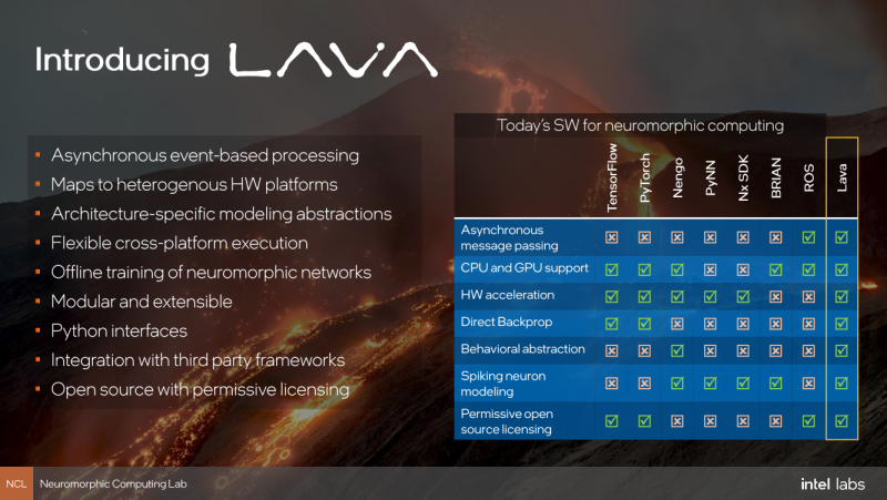 Em geral, os campos de aplicação e tarefas dos novos produtos coincidem com aqueles que agora são servidos por redes neurais “clássicas” (ajustadas para eficiência energética). No entanto, um “hardware” para distribuição não é suficiente, por isso a Intel preparou um framework open source universal LAVA, que irá unificar o desenvolvimento e preparação de modelos para quase todas as soluções de hardware (não apenas neuromórficas), levando em consideração as especificidades de arquiteturas.