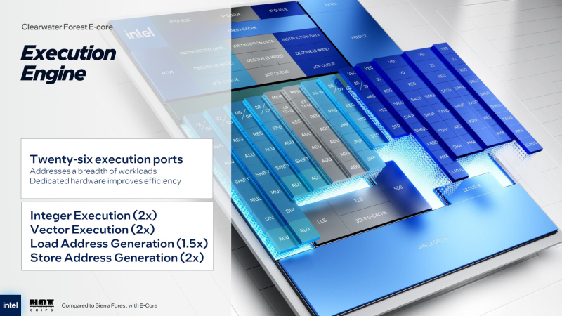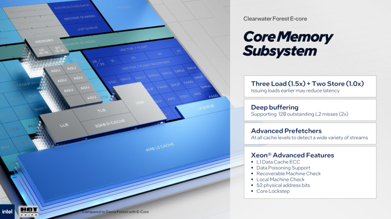 Na conferência anual de tecnologia Hot Chips, que este ano acontece de 24 a 26 de agosto, a Intel divulgou os primeiros detalhes sobre os próximos processadores da série Xeon Clearwater Forest. Esta série contará com processadores equipados apenas com núcleos E de alta eficiência energética.