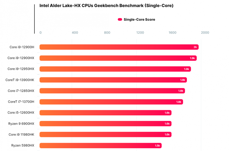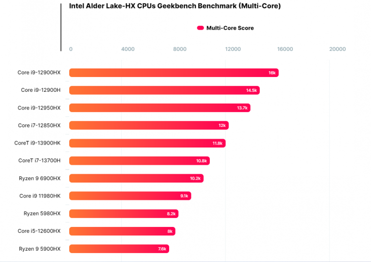 O desempenho dos novos processadores, principalmente os multi-thread, ainda não impressiona. No banco de dados Geekbench, você pode encontrar resultados mais altos para o mesmo modelo Core i9-12900HK. No entanto, os novos chips são amostras de engenharia, por isso é muito cedo para julgar seu desempenho definitivamente.