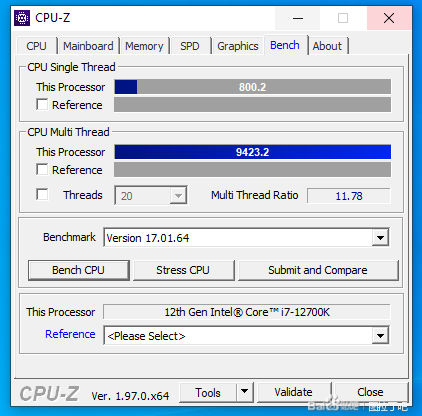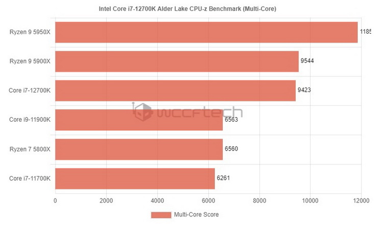 Os resultados de teste disponíveis do Core i7-12700K em CPU-Z indicam que em um teste de thread único é 17,3% mais rápido do que o atual carro-chefe Intel Core i9-11900K, enquanto os processadores Core i7-11700K e AMD Ryzen 7 5800X são 24% mais rápido.