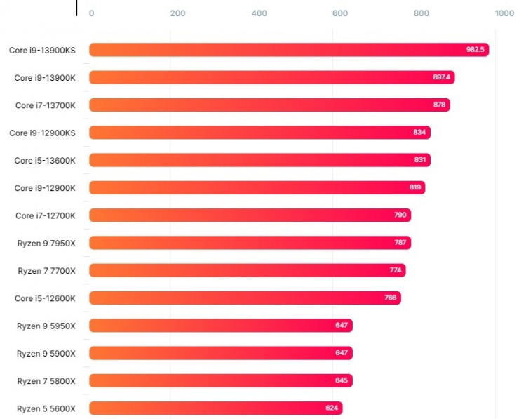 No teste de desempenho de núcleo único do utilitário CPU-Z, o Core i9-13900KS estimado alcançou uma pontuação de 982 pontos, no teste de desempenho de vários núcleos – 18.453 pontos. Ainda não temos análises do Raptor Lake, mas de acordo com vazamentos, o Core i9-13900KS é cerca de 9,5% mais rápido single-core e 9% mais rápido multi-core que o Core i9-13900K.