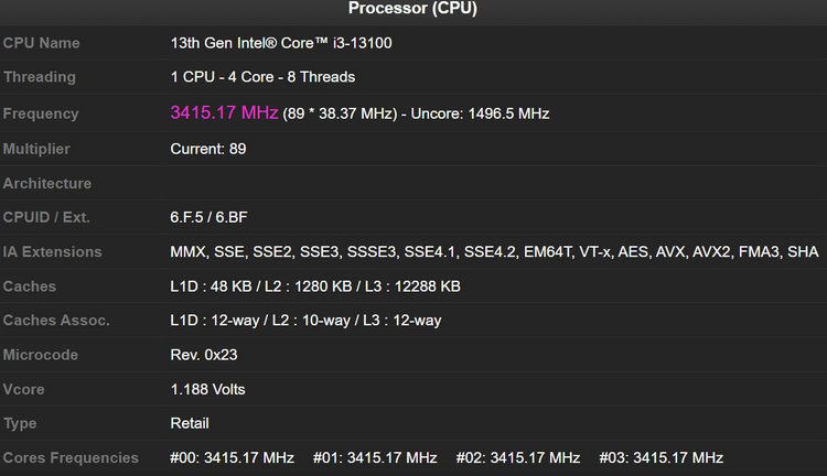 No banco de dados do CPU-Z Validator, surgiram as primeiras informações sobre o processador quad-core Intel Core i3-13100 relacionado à série de chips Raptor Lake. O chip ainda não foi apresentado oficialmente, mas graças ao vazamento, suas principais características técnicas ficaram conhecidas.