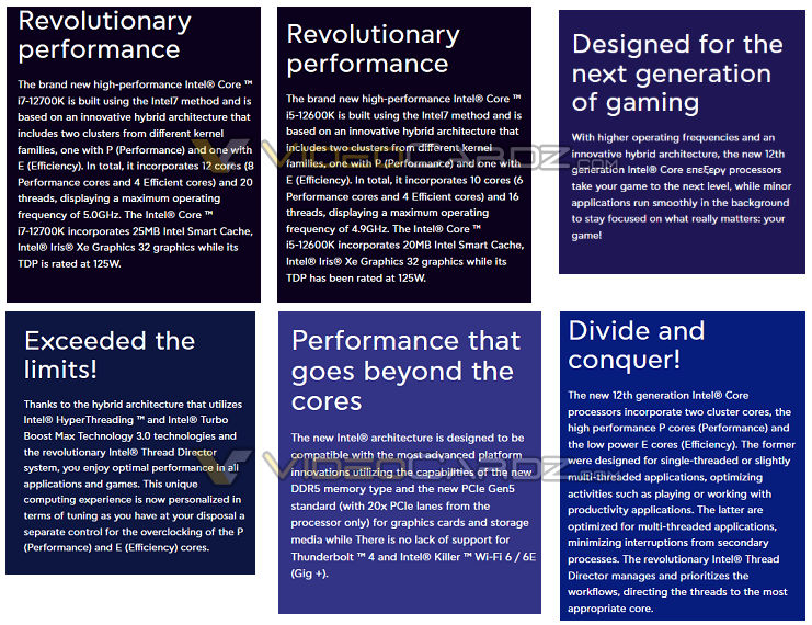 Antecipando a apresentação dos processadores Intel Alder Lake, a VideoCardz publicou materiais promocionais que revelam os principais recursos dos dois processadores da família: Core i7-12700K e Core i5-12600K.