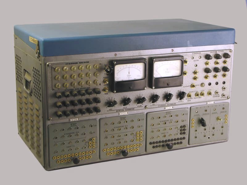 Outro exemplo bem conhecido de dispositivos de computação analógicos é o computador analógico de mesa MH-7, desenvolvido em 1955. Ela resolveu com sucesso equações diferenciais ordinárias até a 6ª ordem. Não menos bem-sucedido, com a ajuda de tais máquinas, foram criados modelos matemáticos de processos físicos, que foram utilizados na solução de problemas de controle automatizado de processos.
