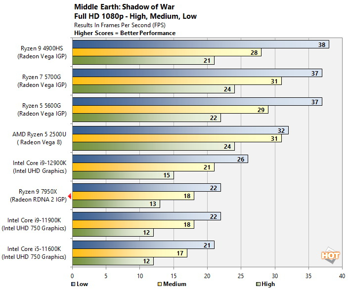 Segundo os jornalistas, os gráficos integrados dos processadores Ryzen 7000 realmente não são adequados para rodar jogos modernos. Especialmente quando se trata de títulos de jogos que dependem muito do desempenho gráfico. Eles se recusam a trabalhar em um nível aceitável de desempenho, mesmo usando as configurações mínimas de qualidade. Exemplos incluem Middle Earth: Shadow of War, bem como Watch Dogs: Legion e Call of Duty: Modern Warfare II.