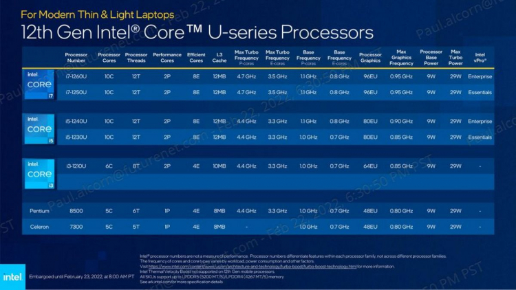 A Intel compartilhou detalhes sobre os modelos de processadores móveis Alder Lake com eficiência energética que estão disponíveis nas séries P e U. O fabricante também confirmou que os primeiros laptops baseados neles estarão à venda no próximo mês.