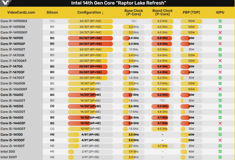 A Intel vai expandir a série de processadores Raptor Lake Refresh com modelos de chips de 24, 20, 14 e 10 núcleos com um multiplicador bloqueado. Ao mesmo tempo, alguns futuros processadores, principalmente relacionados ao segmento low-end, não foram lançados anteriormente na linha de chips com o sufixo “K”.