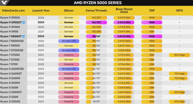 Os processadores Ryzen 7 5800XT e Ryzen 9 5900XT baseados na arquitetura Zen 3 podem estar à venda simultaneamente com os chips Ryzen 9000 baseados no Zen 5 em agosto, de acordo com alguns varejistas.