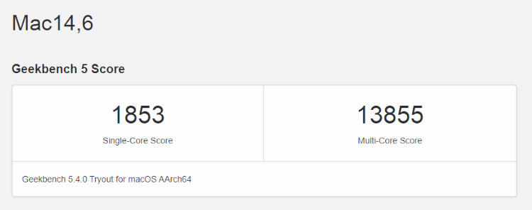 O relatório do Geekbench lista um determinado computador Mac14.6 executando macOS 13.2, que também ainda não foi anunciado. Em um teste de núcleo único, o chip marcou 1853 pontos, em um teste de vários núcleos – 13.855. Este resultado é um tanto decepcionante, porque o MacBook Pro no Apple M2 de 8 núcleos mostra 1899 pontos em um teste de núcleo único e em comparação com o M1 Max no Mac Studio, o desempenho da novidade não impressiona – nos mesmos testes, este último marca 1.755 e 12.333 pontos, respectivamente.