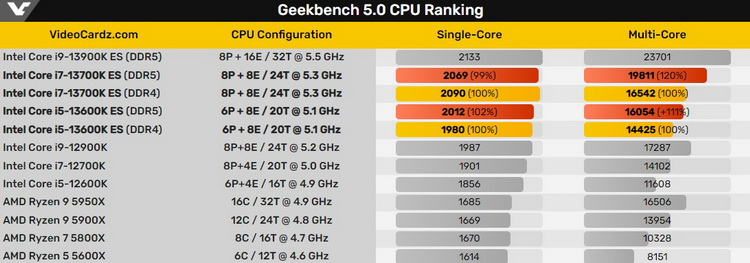 No início do Geekbench, em conjunto com a RAM DDR5, o Core i9-13900K de 24 núcleos também foi observado. Apesar de ser apenas uma amostra de engenharia, o chip ficou no topo da classificação, superando todos os seus concorrentes.