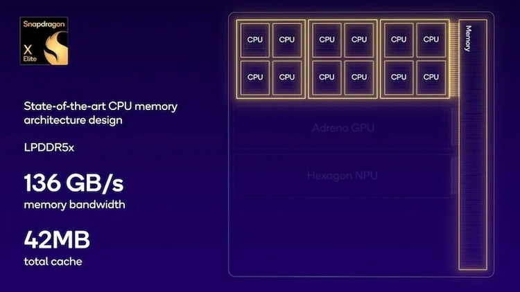 As especificações oficiais do processador foram totalmente confirmadas por um vazamento anterior. Em todos os núcleos, o Snapdragon X Elite é capaz de operar a até 3,8 GHz, e em um ou dois pode fazer overclock automático para 4,3 GHz. Além disso, soube-se que o chip possui 42 MB de memória cache total.