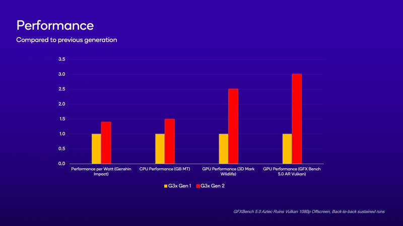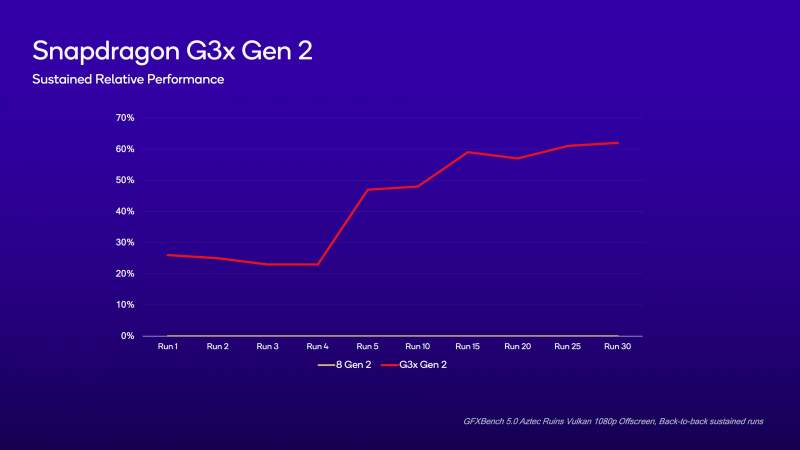A Qualcomm afirma que o subsistema gráfico Snapdragon G3x Gen 2 é duas vezes mais poderoso que seu antecessor. O desempenho computacional da novidade é “mais de 40% superior” ao do Snapdragon G3x Gen 1.