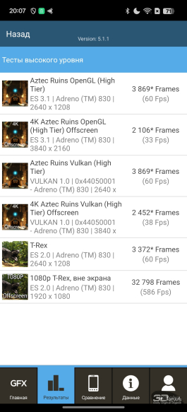 Nos testes gráficos (3DMark em diferentes formas, GFXBench), como no AnTuTu, vemos números muito poderosos. Ou seja, podemos concluir que a Qualcomm não exagerou sobre o aumento acentuado de potência com o uso não apenas de núcleos Oryon novos, mas também de gráficos Adreno 830.