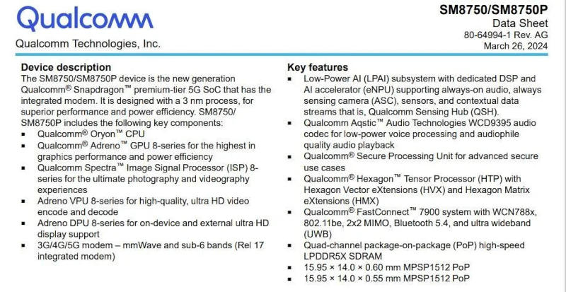O chip estará disponível em duas versões: o SM8750 padrão e o SM8750P de alto desempenho. A Qualcomm seguirá o esquema de nomenclatura estabelecido e é improvável que tente algo novo. A versão padrão do processador estará presente em smartphones emblemáticos de fabricantes como Xiaomi, OnePlus, Honor e Asus, enquanto a variante de alto desempenho provavelmente estará reservada para o Samsung Galaxy S25 Ultra.