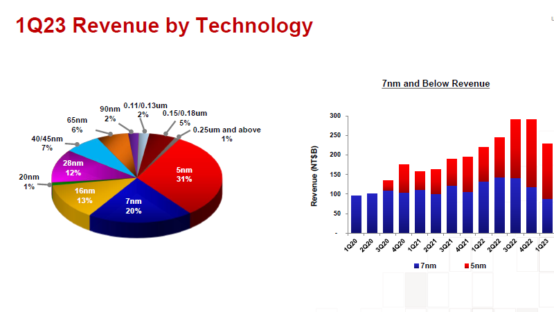 Para a empresa taiwanesa TSMC, o primeiro trimestre foi um período difícil e um tanto polêmico. Na moeda taiwanesa, a receita cresceu 3,6% em relação ao ano anterior, mas em dólares americanos diminuiu 4,8%, enquanto o lucro líquido aumentou 2,1% nos últimos quatro anos, para US$ 6,8 bilhões. A produção em comparação com o ano passado diminuiu imediatamente em 14,6%.