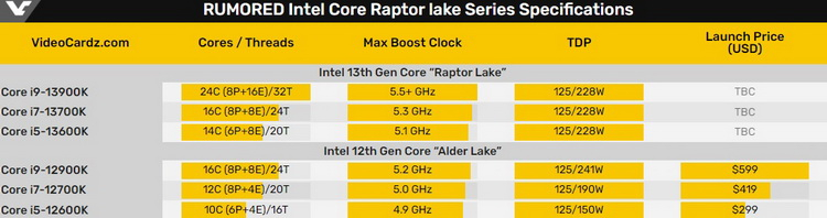 Em setembro, a Intel apresentará apenas seis processadores da nova série Raptor Lake: o principal Core i9-13900K e KF de 24 núcleos, o Core i7-13700K/KF de 16 núcleos e o Core i5-13600K/KF de 14 núcleos. . Além disso, a empresa está anunciando um novo chipset Z790 para placas-mãe.