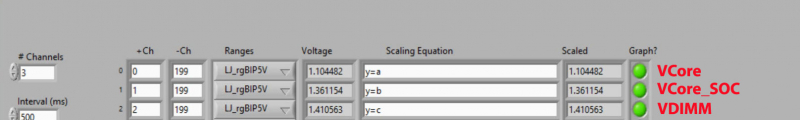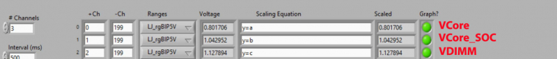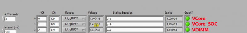 Durante os testes, o fabricante mediu as tensões de operação Vcore, Vcore_SOC e VDIMM. As medições foram realizadas diretamente através das almofadas de contato da placa-mãe.