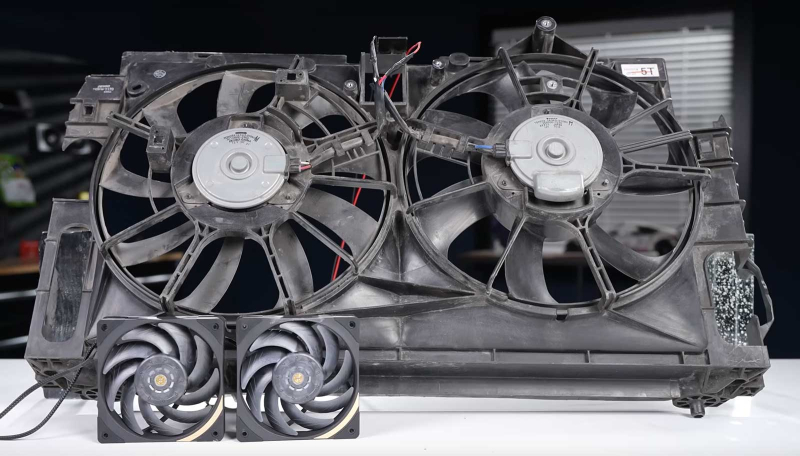 A bomba do sistema de arrefecimento do BMW M4 é capaz de bombear 1.200 litros por hora, ou 20 litros por minuto. Para melhorar a eficiência do arrefecimento, o entusiasta também instalou duas ventoinhas de 30 centímetros de um radiador Toyota Highlander 4×4, cada uma consumindo 100 watts de eletricidade.