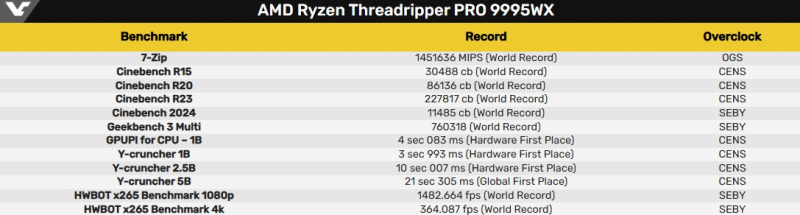 A equipe interna de overclocking da Asus anunciou que estabeleceu vários recordes mundiais de desempenho para seu processador de estação de trabalho Ryzen Threadripper Pro 9995WX de 96 núcleos.