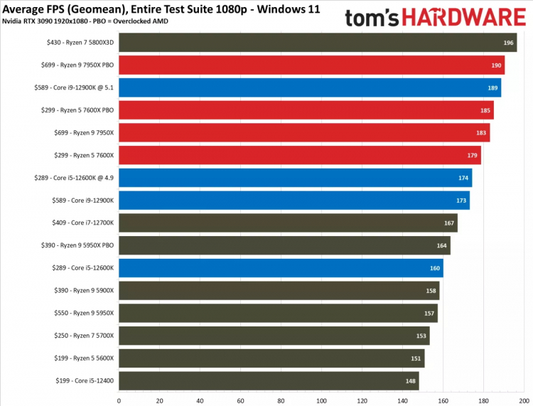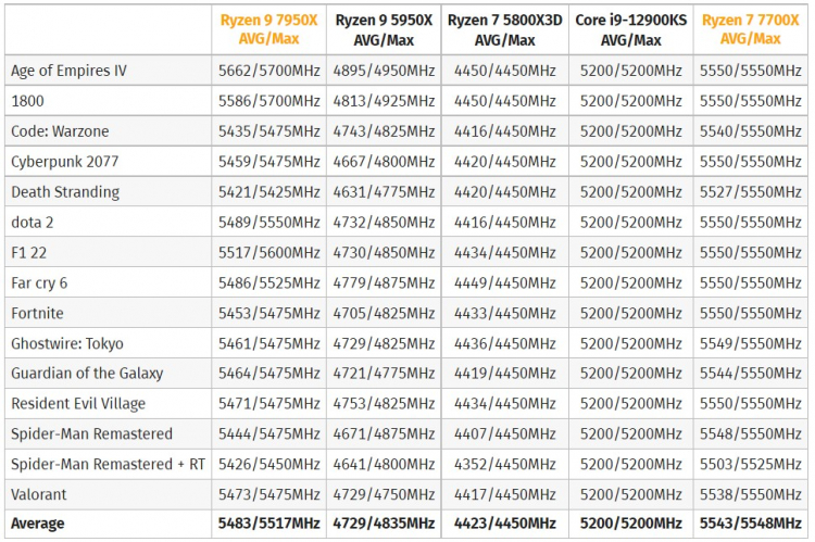 Mas o portal Tom’s Hardware informa que em média nos jogos apenas o chip Core i9-12900K com overclock para 5,1 GHz é capaz de competir com os novos AMD Ryzen 9 7950X e Ryzen 5 7600X. Com configurações padrão, os novos produtos da AMD são mais rápidos. Observe também que nem em todos os jogos o carro-chefe é mais rápido que outros novos produtos da AMD. Como você pode ver na tabela a seguir, o Ryzen 7 7700X teve um desempenho melhor do que o carro-chefe em muitos dos testes de jogos da ComputerBase.