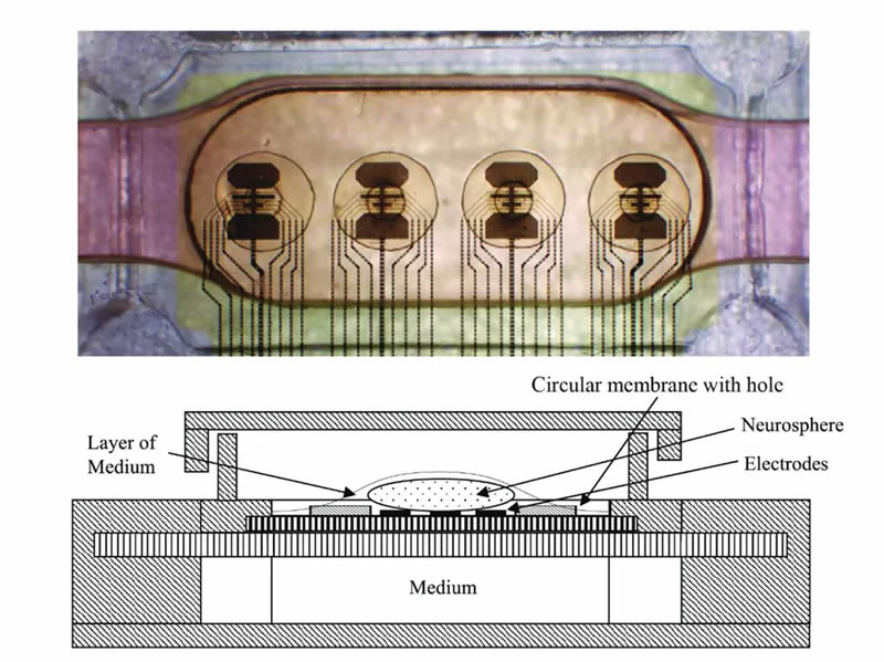 A arquitetura da plataforma combina hardware, software e biologia. Baseia-se no uso de matrizes multieletrodos (MEAs) que abrigam organoides do cérebro humano em um sistema microfluídico de suporte à vida. As massas de tecido 3D são conectadas e estimuladas por oito eletrodos, com câmeras de vigilância e uma pilha de software personalizada para permitir que os pesquisadores insiram variáveis de dados e leiam e interpretem a saída do processador.