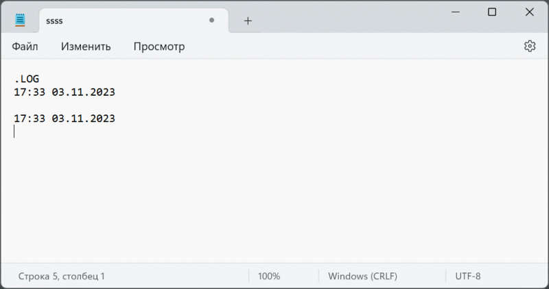 O número de funções disponíveis no Bloco de Notas, conhecidas por todos os usuários do Windows, é uma ou duas. No entanto, poucas pessoas conhecem um antigo segredo de um editor de texto que permite inserir automaticamente a hora e a data de cada entrada inserida no programa. Isso pode ser útil para registrar quaisquer ações ou manter um diário pessoal baseado no tempo. Ativar esta função é muito simples: você precisa escrever .LOG no início do arquivo de texto e salvá-lo. A cada abertura subsequente de tal arquivo, o cursor se moverá para o final e a data e hora atuais serão inseridas automaticamente na frente dele.