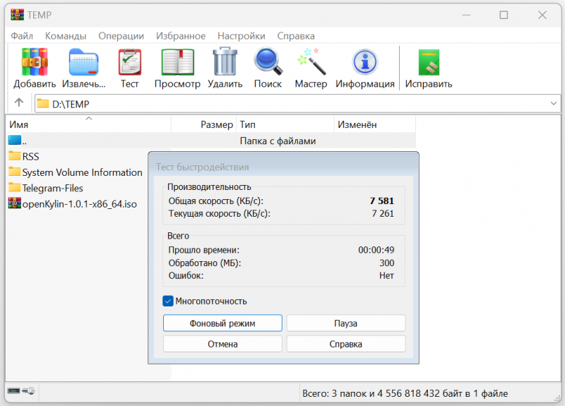 O arquivador WinRAR vem com um benchmark integrado para avaliar o desempenho do processador e da RAM do computador ao realizar operações de compactação e descompactação em dados gerados aleatoriamente usando o algoritmo RAR. Antigamente, esta ferramenta era especialmente procurada por jornalistas de TI e especialistas envolvidos em análises e comparações de tecnologia informática. Agora a relevância da ferramenta de teste de desempenho de PC integrada ao WinRAR praticamente desapareceu, mas o próprio benchmark continua fazendo parte do arquivador e, como sempre, está localizado no menu “Operações → Teste de Desempenho”. É importante lembrar que o teste não utiliza unidades HDD ou SSD instaladas no computador; todas as operações são realizadas na memória RAM da máquina.