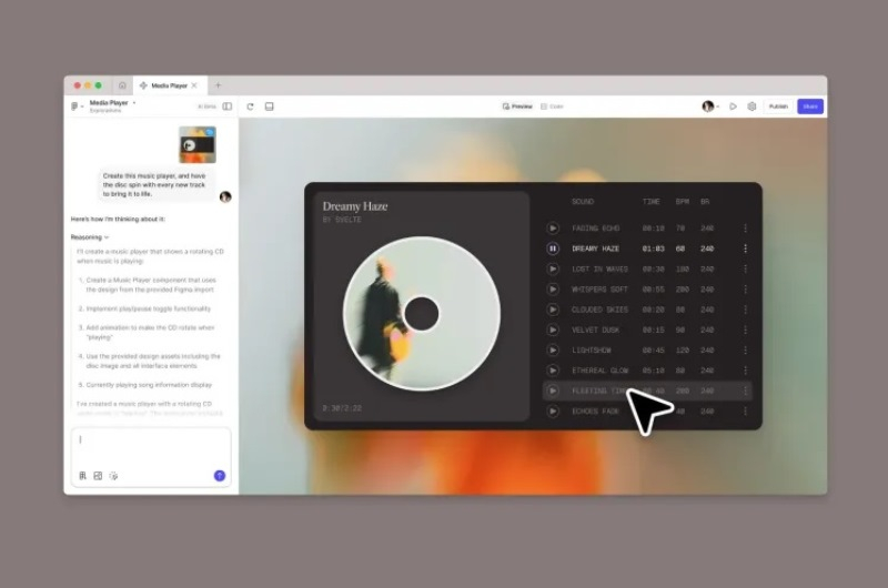 Uma das vantagens notáveis do Figma Make em comparação com outros construtores de aplicativos é a possibilidade de adicionar seu próprio design de interface. Os usuários podem complementar a descrição textual do que desejam criar com imagens ou um layout criado no Figma. Essa abordagem permite que você alcance um resultado o mais próximo possível do que deseja.