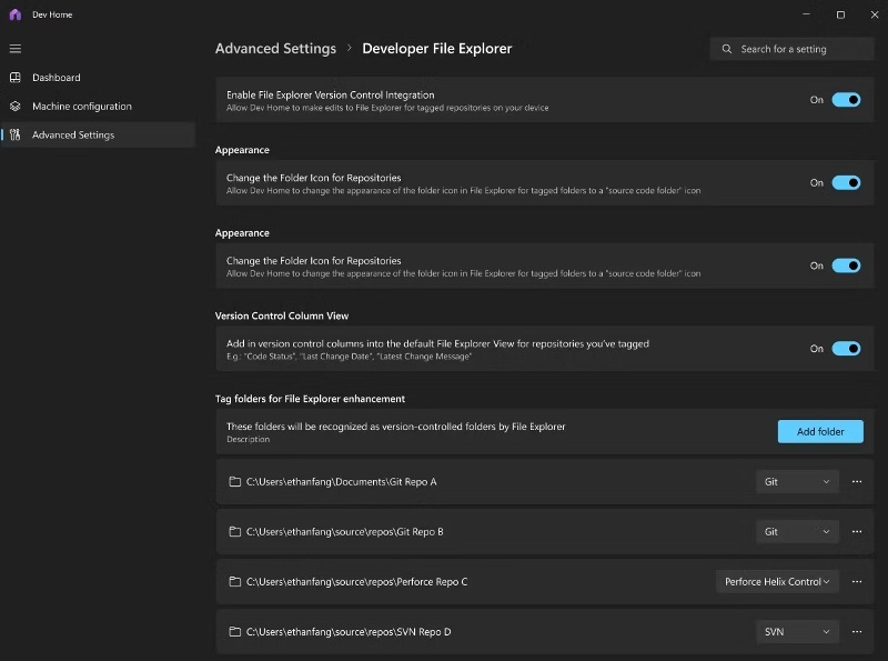 - Crie uma interface de usuário única para gerenciar/configurar novos recursos para desenvolvedores no Windows (por exemplo, gerenciador de arquivos integrado + integração de controle de versão) para que possamos implementar rapidamente novos recursos/configurações.