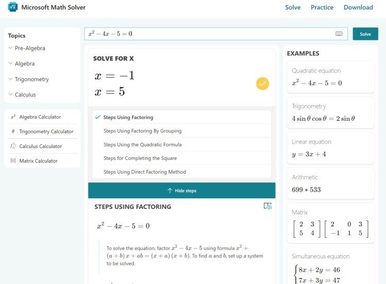 O serviço Math Solver ajuda os usuários a resolver equações matemáticas. O plano dos desenvolvedores é permitir que os alunos carreguem uma imagem da equação no navegador, após o que o algoritmo de IA da Microsoft processará a imagem e sugerirá soluções para a equação. Além disso, esta ferramenta permite inserir equações manualmente e também fornece acesso a tutoriais e testes de matemática.
