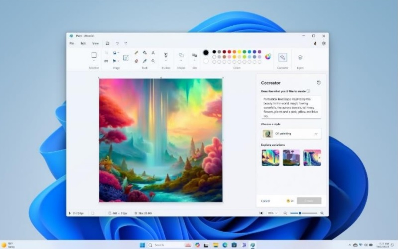 Os desenvolvedores adicionaram um botão Cocriador à barra de ferramentas. Após clicar nele, uma janela se abre no lado direito da área de trabalho para inserir uma descrição de texto e selecionar o estilo da futura imagem. Após inserir os dados iniciais, o Paint gera uma imagem que pode então ser editada. A nova ferramenta provavelmente se tornará popular entre os usuários porque é bastante fácil de interagir.