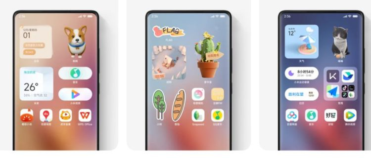 Quanto às mudanças visuais, após a instalação do MIUI 14, os usuários poderão alterar individualmente o tamanho dos ícones dos aplicativos. Cada ícone individual pode ter um dos quatro tamanhos, o que tornará a área de trabalho mais interessante. Além disso, será possível colocar um bichinho virtual ou uma flor na tela principal, o que deve melhorar o humor do usuário durante o dia.