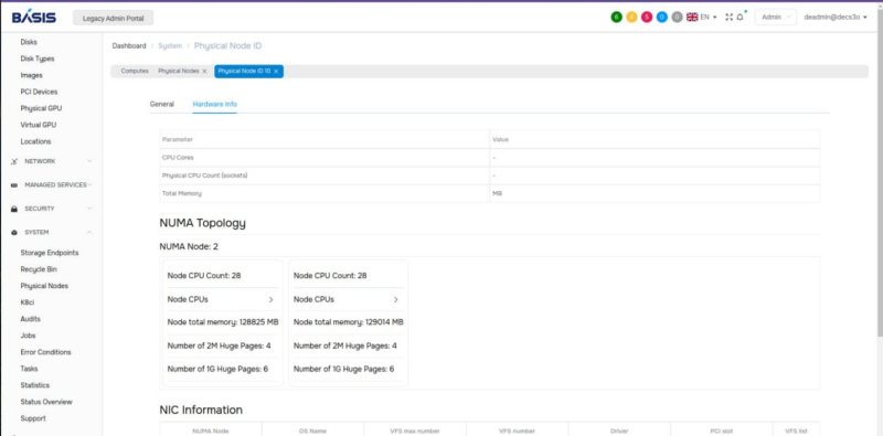 Fig 1. Informações sobre o servidor físico na interface Basis Dynamix (Fonte doravante: “Basis”)