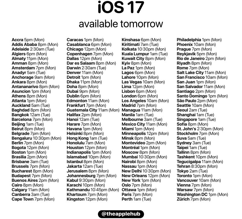 Antecipando o início das vendas dos novos smartphones da série iPhone 15, que foram apresentados ao público em geral no início deste mês, a Apple se prepara para lançar o iOS 17. Uma versão estável do novo sistema operacional da empresa ficará disponível para usuários de dispositivos compatíveis. dispositivos às 20:00, horário de Moscou. Trará consigo muitas inovações interessantes, incluindo modo StandBy e widgets interativos.