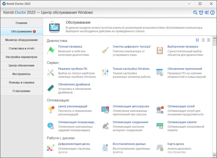 Kerish Doctor 2022 oferece um arsenal completo de ferramentas e opções para manutenção de computadores