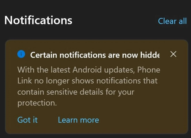 No Android 15, os desenvolvedores do Google implementaram vários novos recursos que visam aumentar a privacidade do usuário. Neste contexto, o aplicativo Connect to Phone da Microsoft, projetado para sincronizar smartphones com computadores Windows, começou a notificar os usuários de que algumas notificações confidenciais de dispositivos Android 15 não aparecerão.