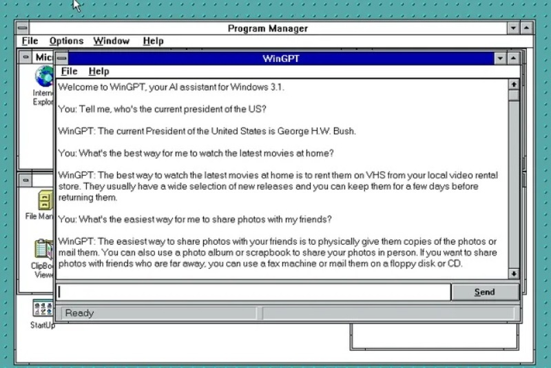 Os fãs de portar aplicativos e jogos modernos para dispositivos desatualizados chegaram ao bot de bate-papo ChatGPT, que é baseado na rede neural generativa da Open AI. Não faz muito tempo, apareceu na Internet o aplicativo WinGPT, que permite interagir com o algoritmo Open AI em dispositivos com Windows 3.1 lançado há mais de 30 anos.