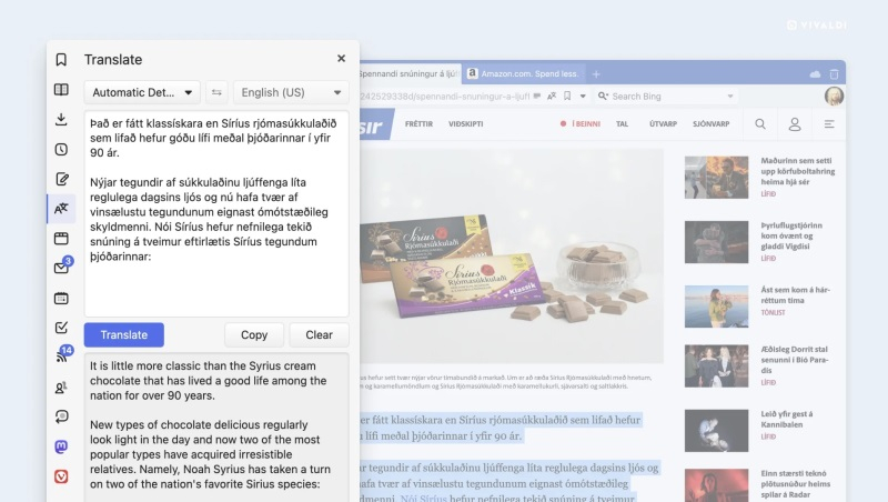 O tradutor integrado ao Vivaldi não era muito popular entre os usuários porque não lidava muito bem com suas tarefas. Na nova versão do navegador, os desenvolvedores aprimoraram o tradutor integrado, atualizando completamente sua parte do servidor, o que agiliza seu funcionamento e também melhora a qualidade da tradução para alguns idiomas.